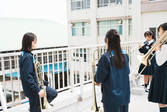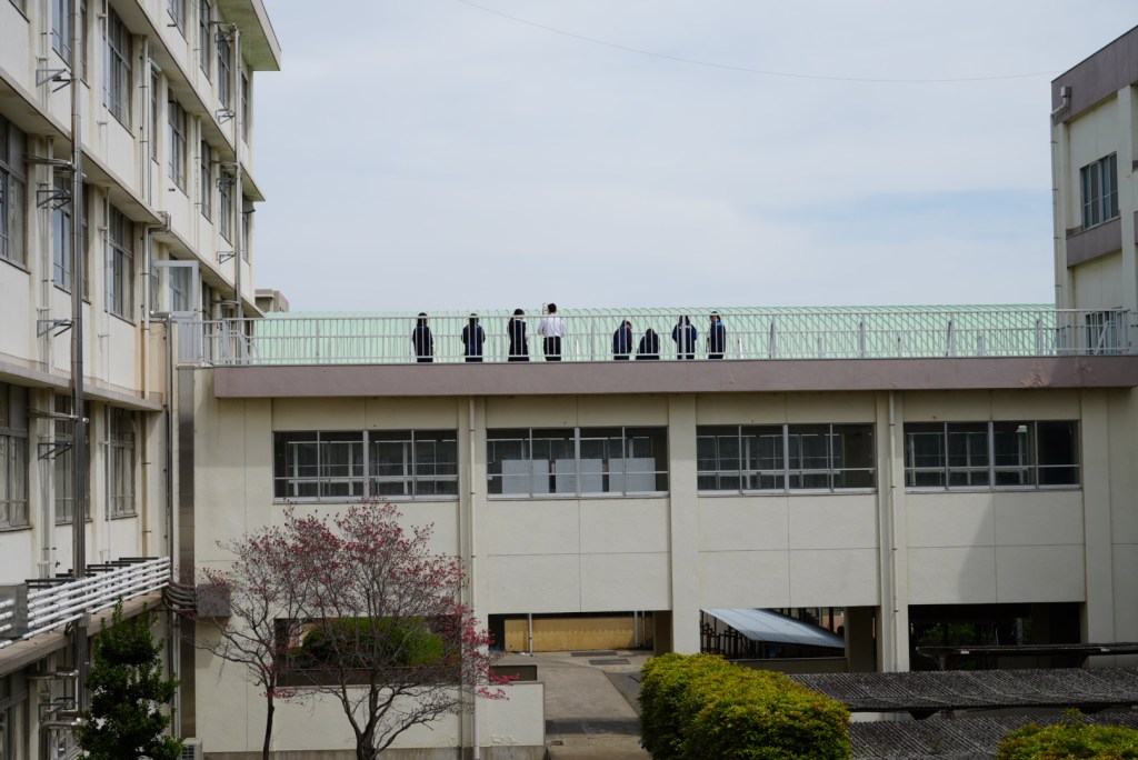 この渡り廊下は案外広く、音も響くので人気の練習場所です